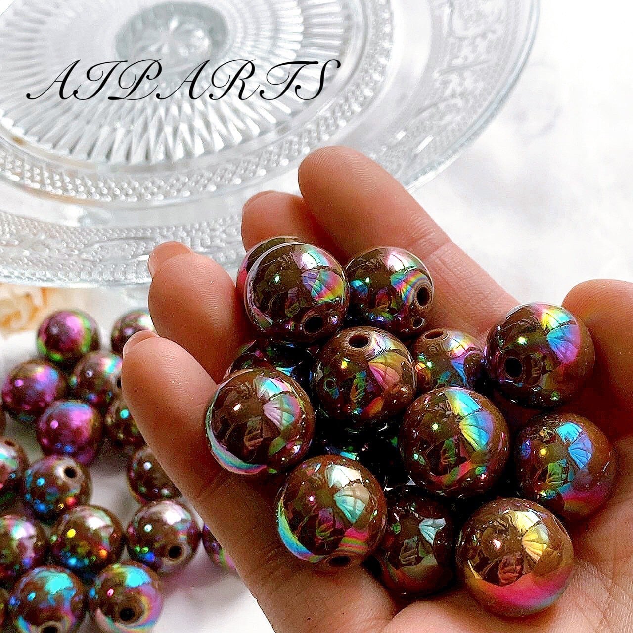 アクリルビーズ オーロラ加工 虹色メッキ
