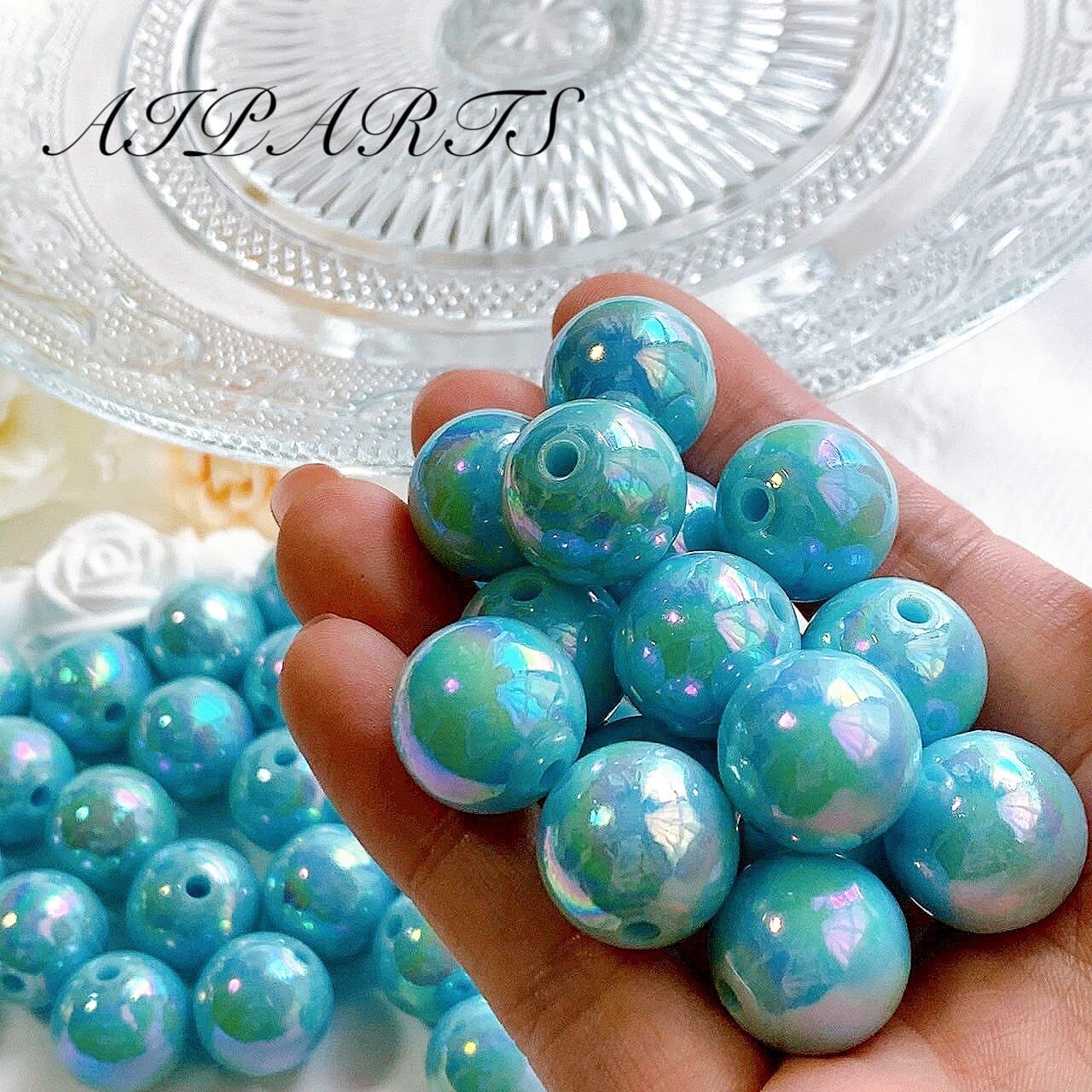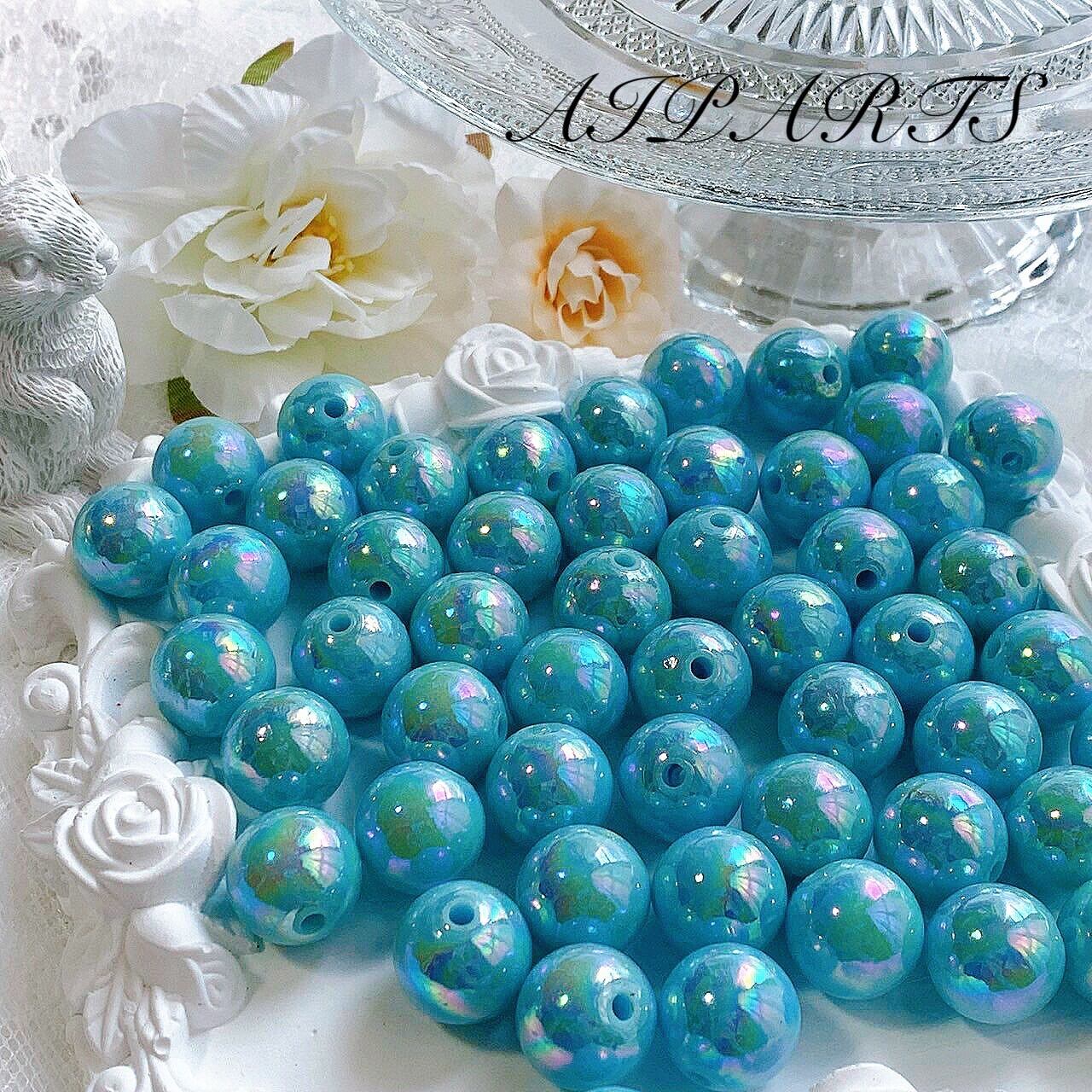 【1袋100円均一】ハンドメイド資材 素材 アクリルビーズ オーロラ加工 虹色メッキ ABメッキ カスタムビーズ カスタムパーツ 16mm