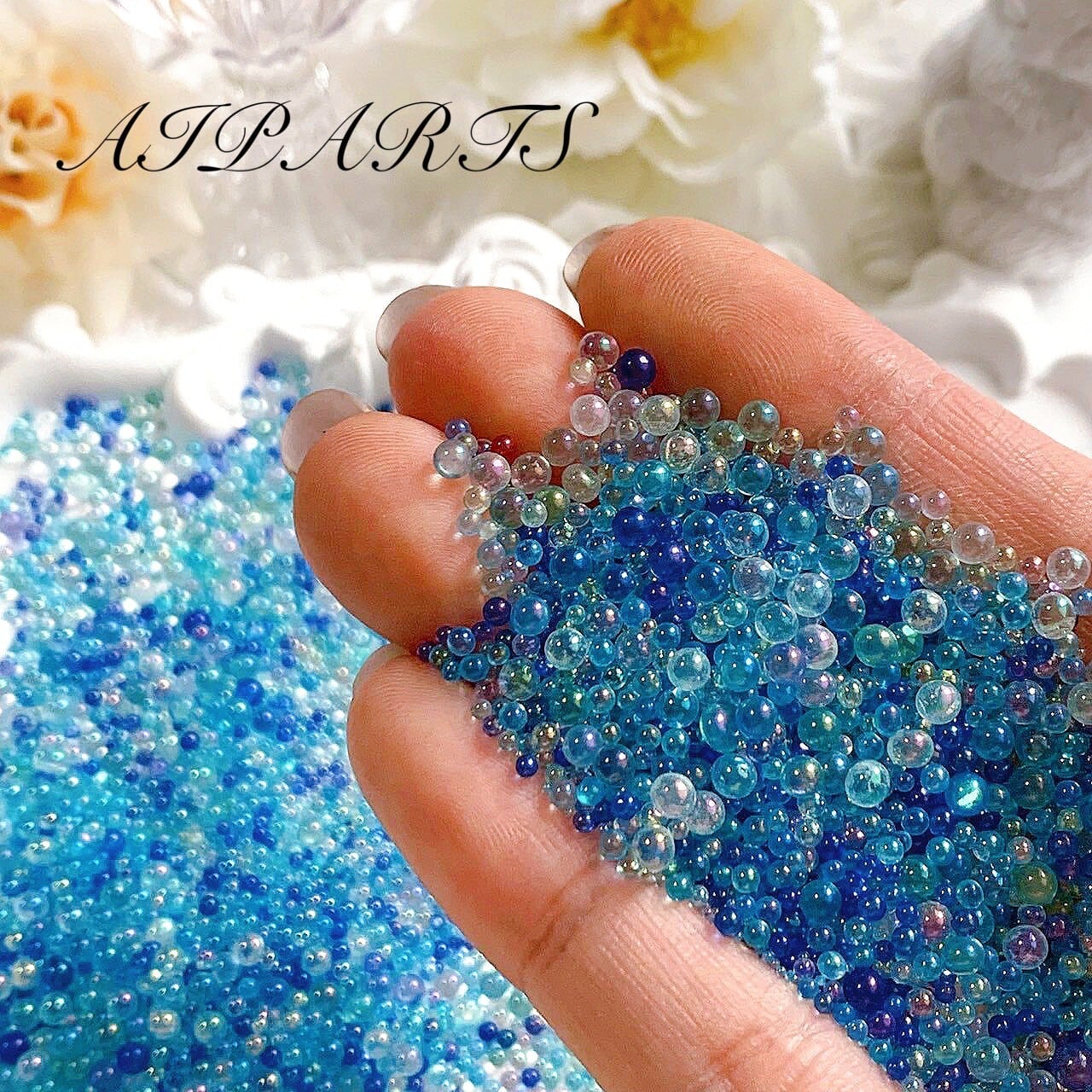 ガラスビーズ 穴なし バブルビーズ キャビアビーズ レジン用品 ネイル用品 封入パーツ ネイルパーツ オーロラ加工 虹色メッキ ABメッキ