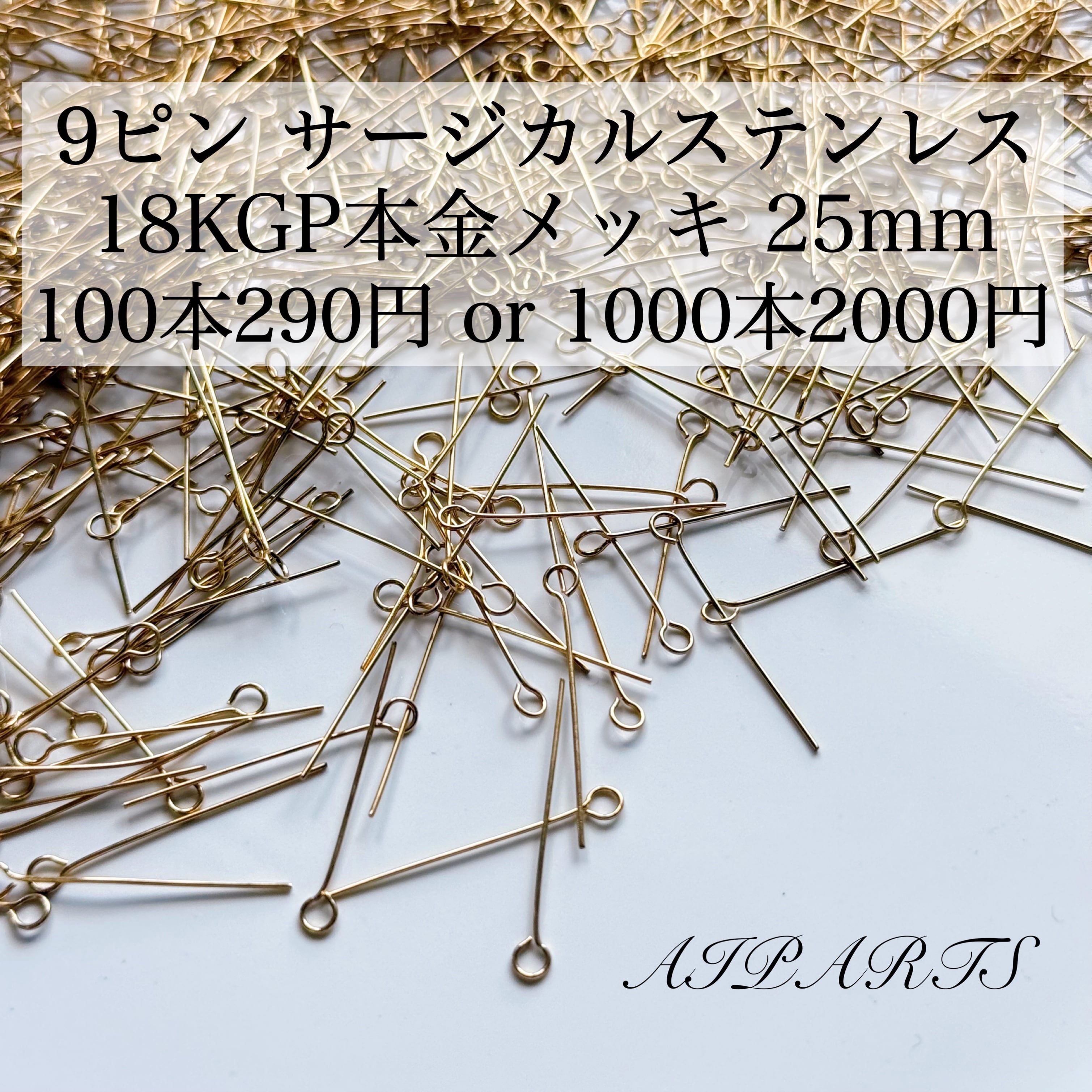 9ピン 基礎パーツ サージカルステンレス 25mm 304ステンレス 18KGP 本金メッキ ハンドメイド資材 ハンドメイド素材 パーツ DIY素材 手芸用品 | 1袋100円均一ハンドメイド資材♡AIPARTS
