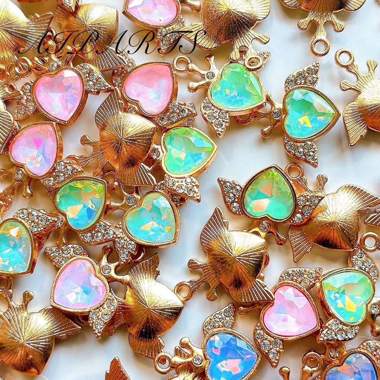 チャーム ペンダント ガラス ビジュー ハート 翼 羽 ガラスラインストーン カドミウムフリー&鉛フリー ハンドメイド資材 ハンドメイド素材 DIY素材 | 1袋100円均一ハンドメイド資材♡AIPARTS