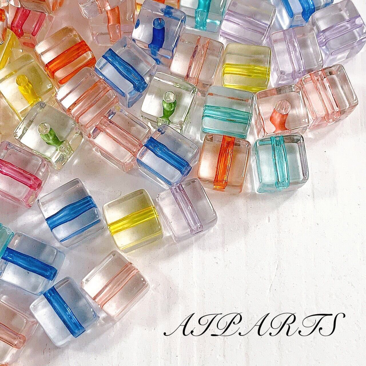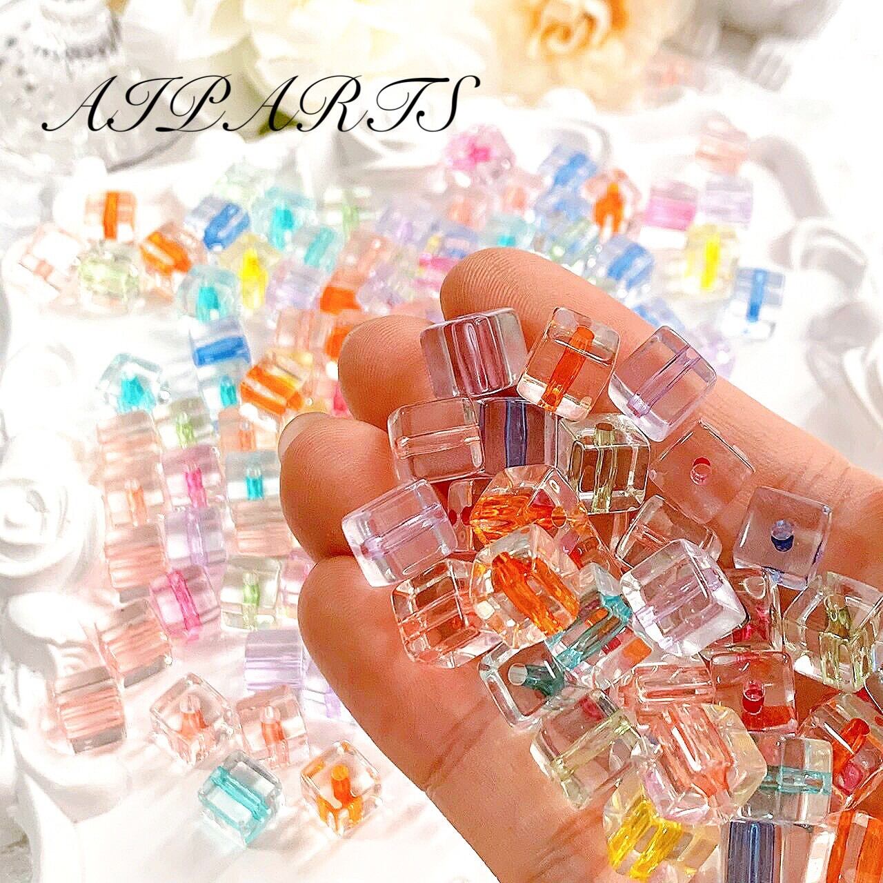 アクリルビーズ 8mm 内側カラー キューブビーズ スクエアビーズ 四角 カスタムビーズ カスタムパーツ ハンドメイド資材 ハンドメイド素材 DIY素材 アクセサリーパーツ | 1袋100円均一ハンドメイド資材♡AIPARTS