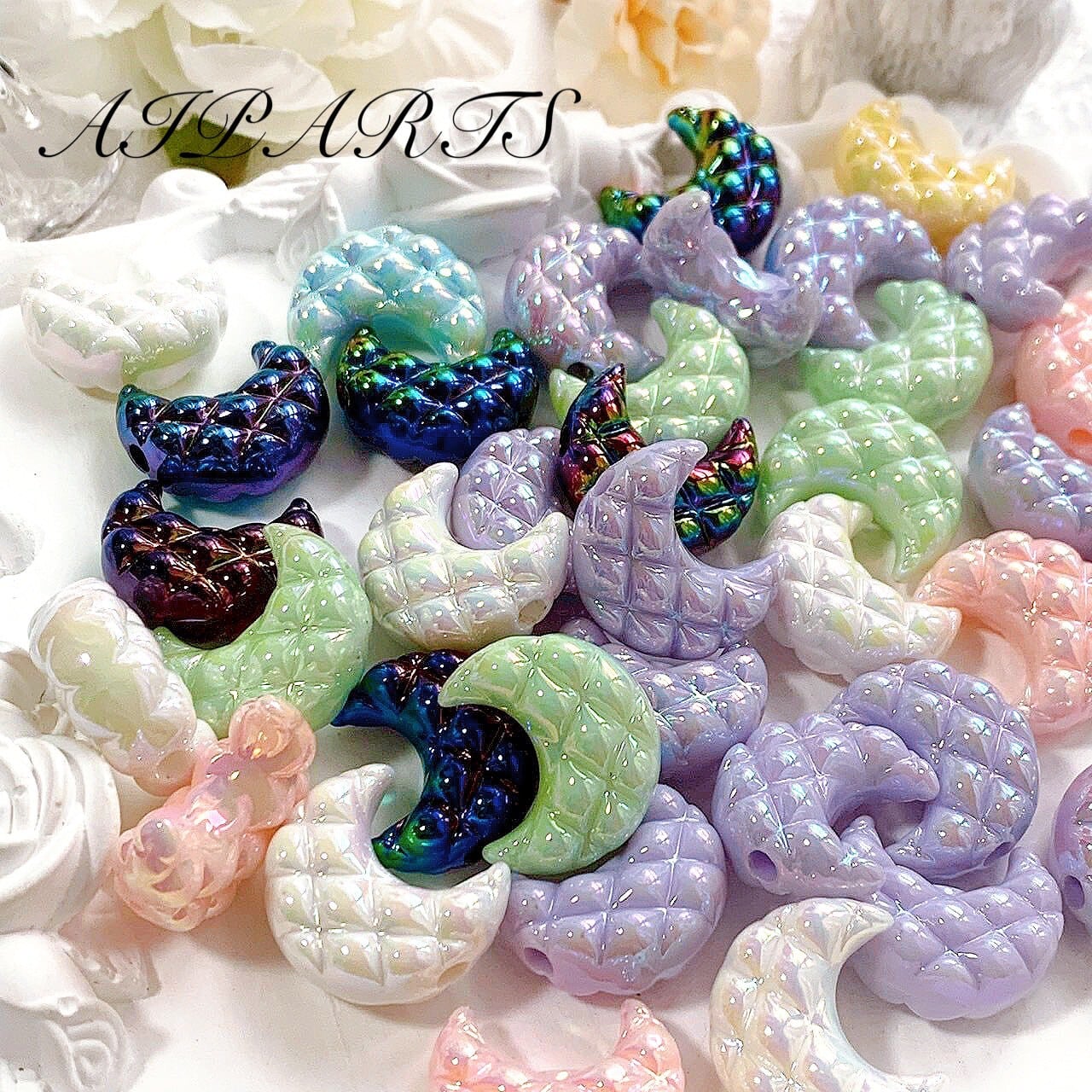 アクリルビーズ 月 ムーン 高品質 高級 オーロラ加工 虹色メッキ ABメッキ キルティング カスタムビーズ カスタムパーツ ハンドメイド資材 ハンドメイド素材 DIY素材 アクセサリーパーツ | 1袋100円均一ハンドメイド資材♡AIPARTS
