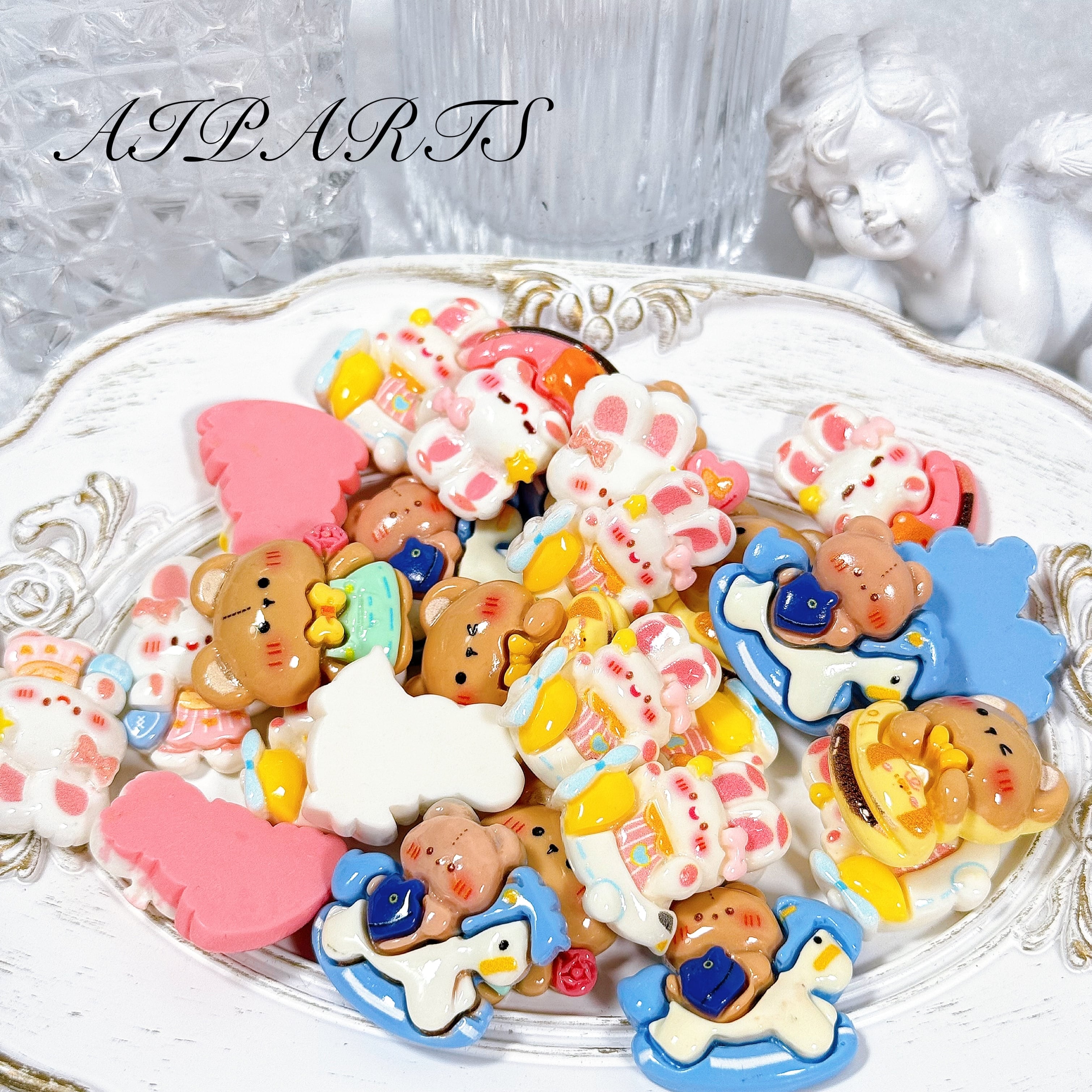 デコパーツ 貼り付け カボション クマ 熊 くま ウサギ うさぎ 兎 アニマル 動物 ハンドメイド資材 ハンドメイド素材 DIY素材 アクセサリーパーツ | 1袋100円均一ハンドメイド資材♡AIPARTS
