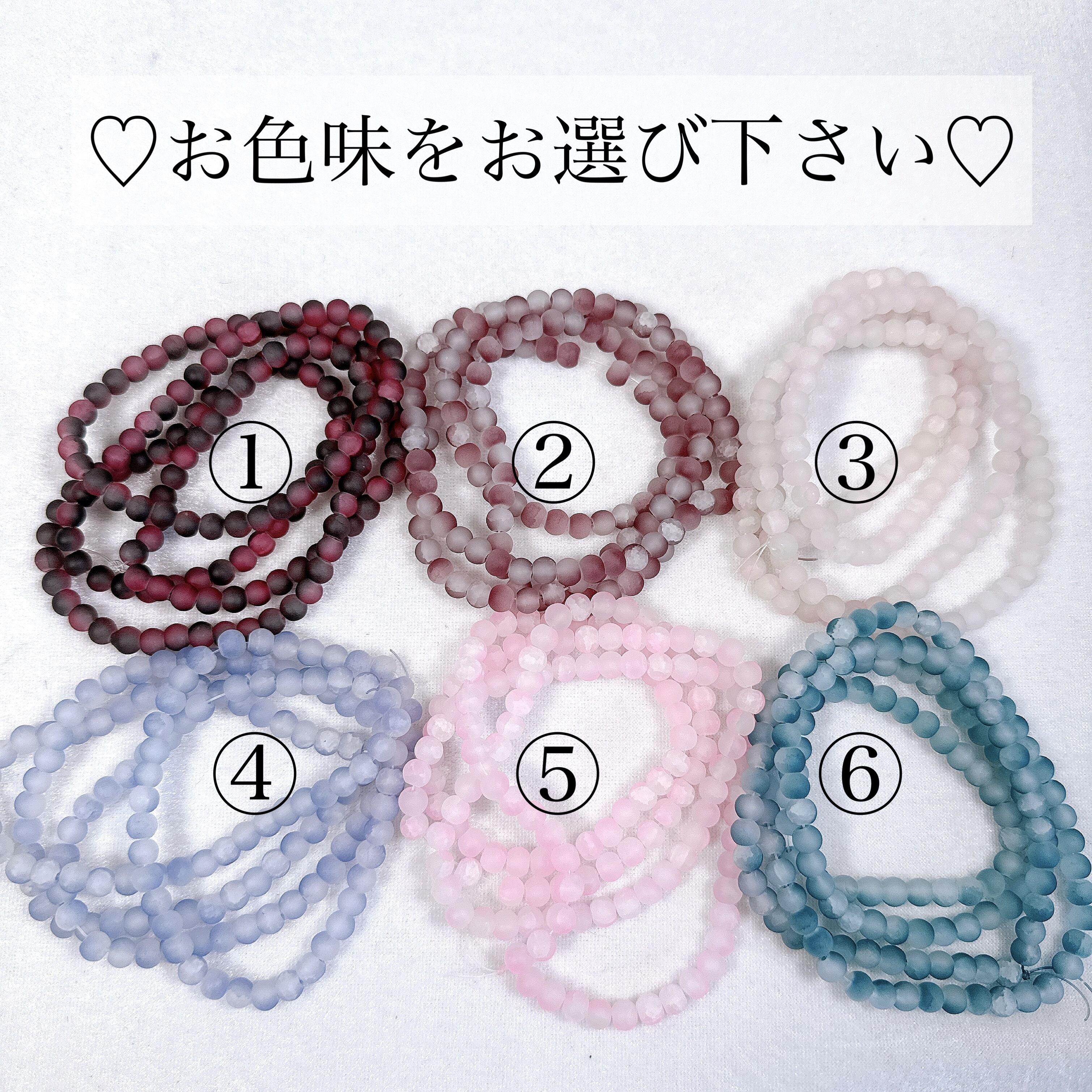 (ガラスビーズ連材は性質上、粒個数に個体差がある事が多いので、ご了承頂いた上でご購入下さい。)