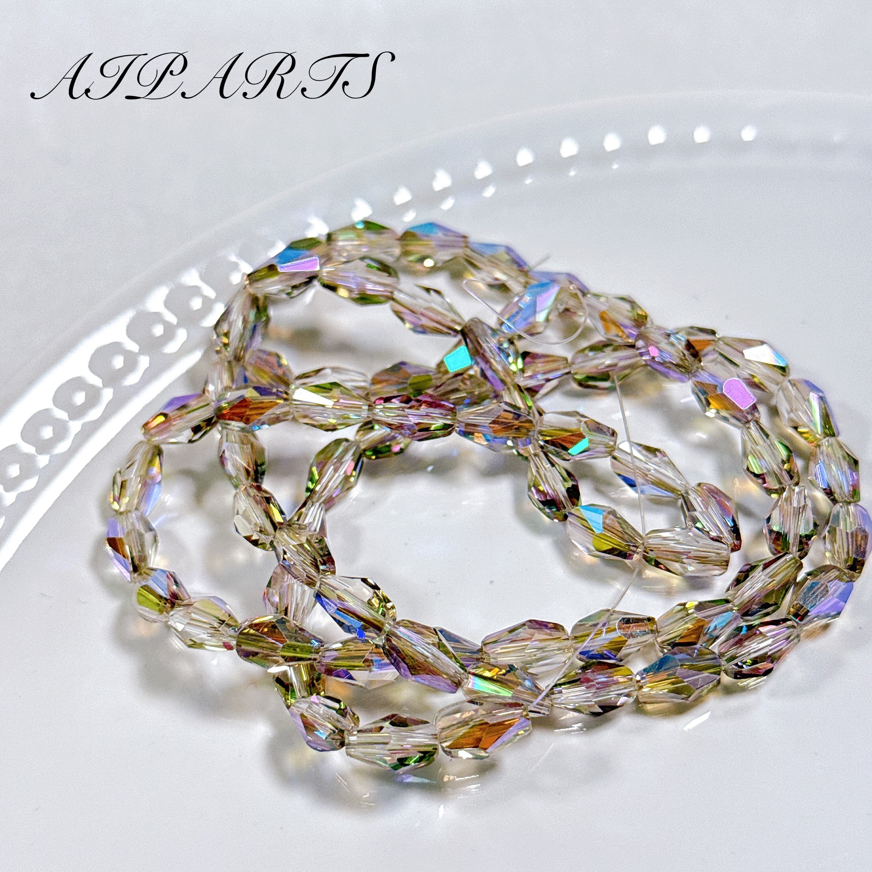 ガラスビーズ 連材 高品質 オーバル 多面カット 多角オーロラ加工 虹色メッキ ABメッキ ハンドメイド資材 ハンドメイド素材 DIY素材 アクセサリーパーツ | 1袋100円均一ハンドメイド資材♡AIPARTS