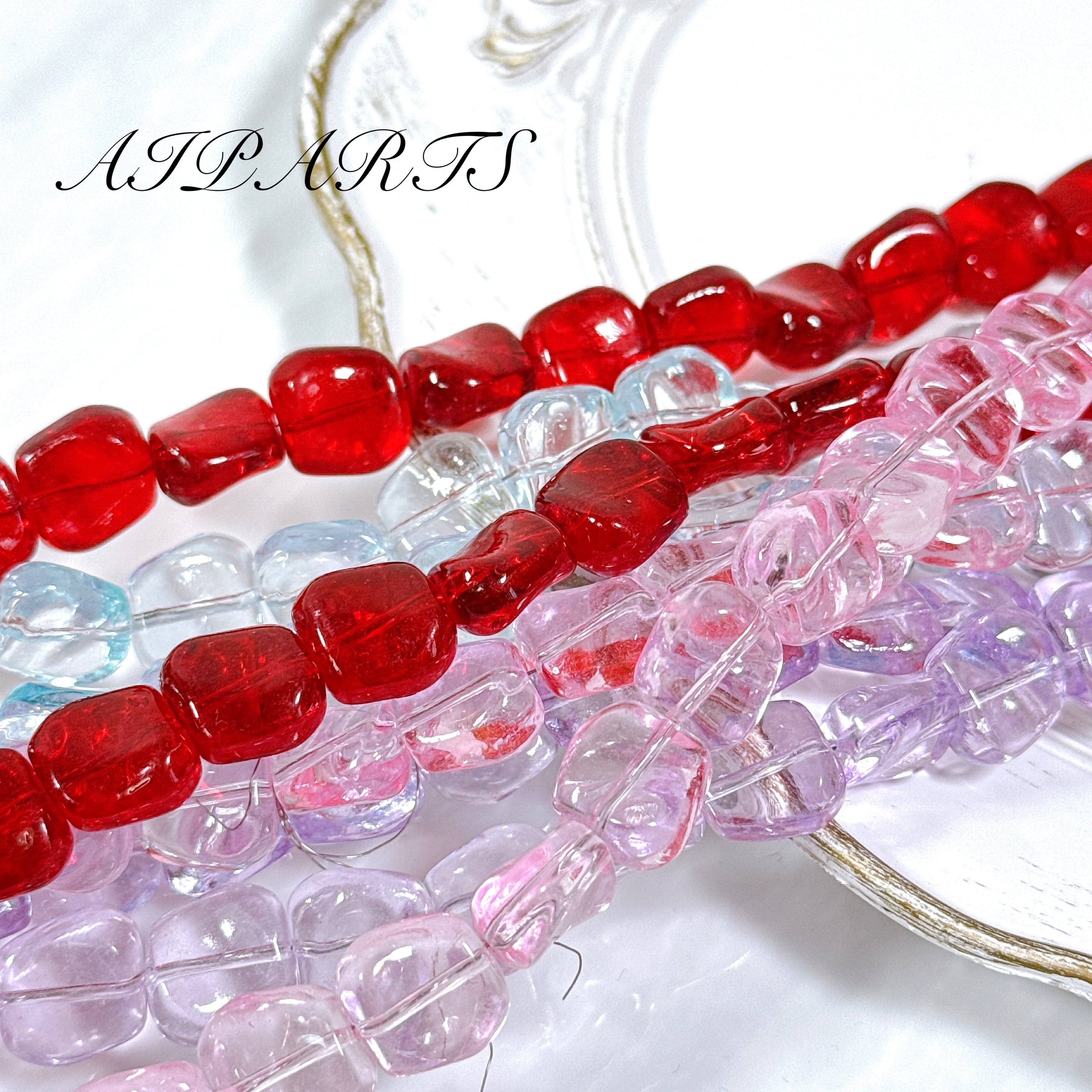 ガラスビーズ 連材 メッキ加工 変形 キューブビーズ スクエアビーズ 四角