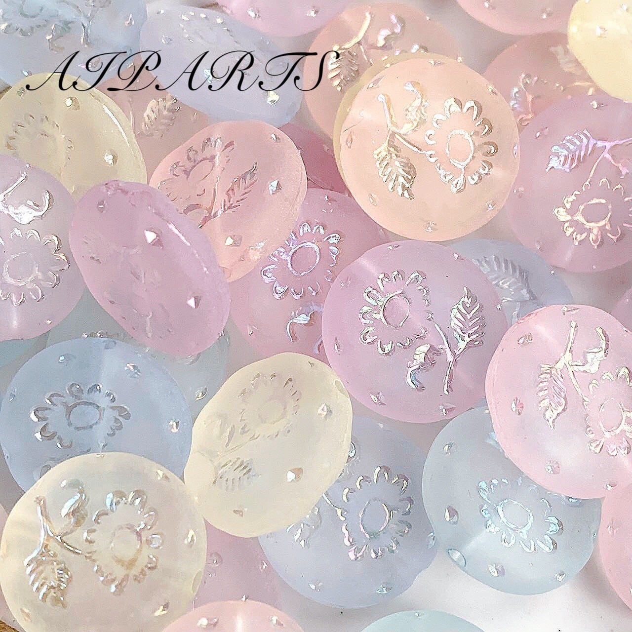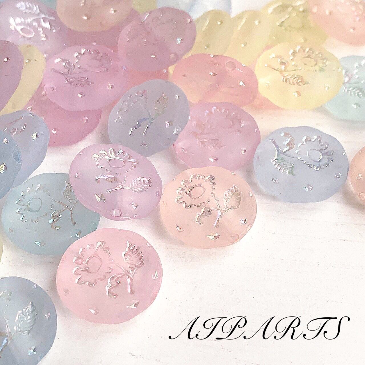 アクリルビーズ 花柄 オーロラメッキライン フラットラウンド フロスト つや消し ハンドメイド資材 ハンドメイド素材 DIY素材 アクセサリーパーツ
