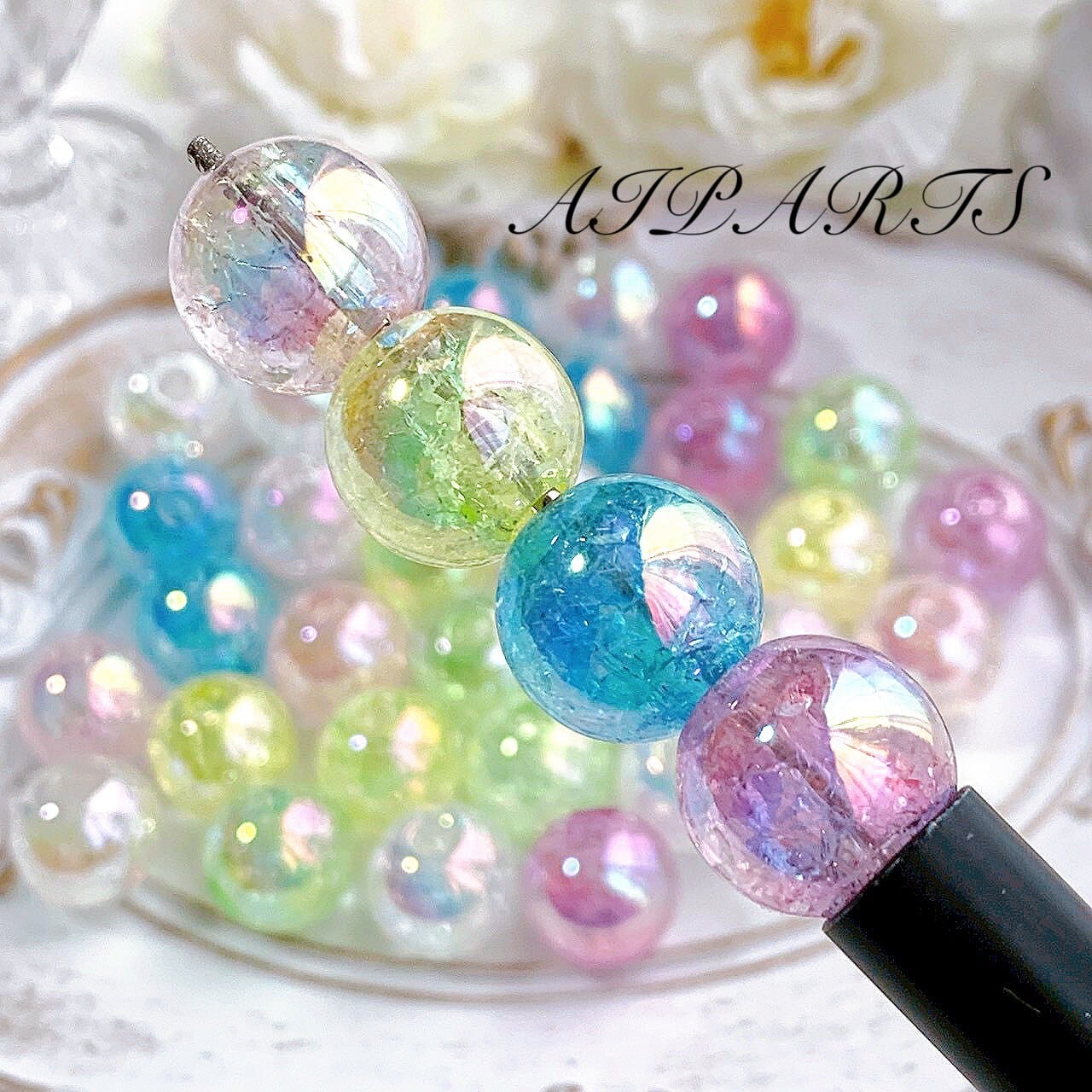 アクリルビーズ 16mm 高品質 高級 オーロラ加工 虹色メッキ ABメッキ クラック クラッシュ 爆裂 カスタムビーズ カスタムパーツ ハンドメイド資材 ハンドメイド素材 DIY素材 アクセサリーパーツ