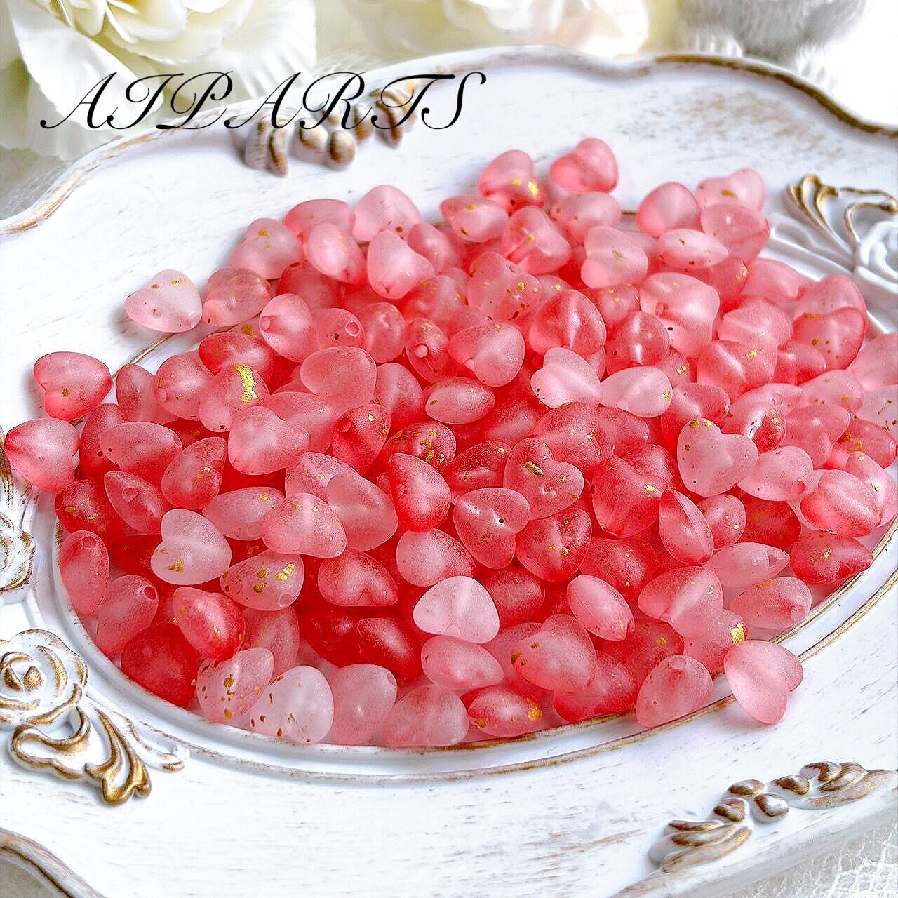 アクリルビーズ ハート 金箔 赤系 グラデーション フロスト 艶消し ハンドメイド資材 ハンドメイド素材 DIY素材 アクセサリーパーツ
