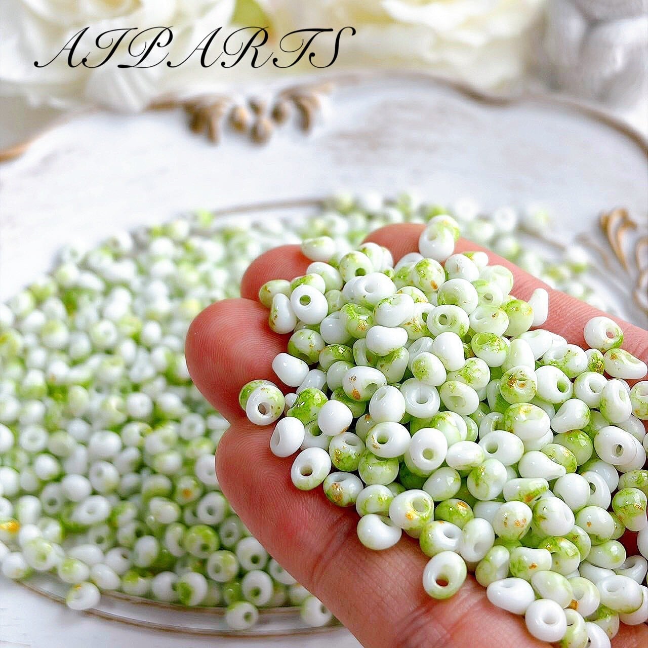 ガラスビーズ 端穴 30g約300粒 金箔 しずく型 雫 ティアドロップ ハンドメイド資材 ハンドメイド素材 DIY素材 アクセサリーパーツ