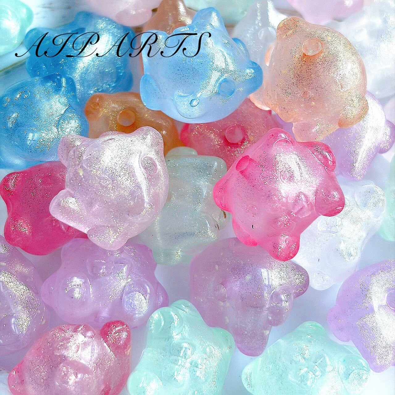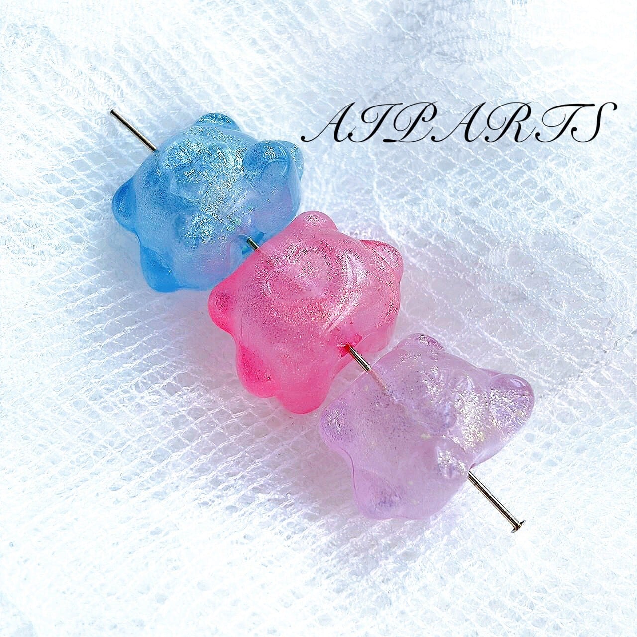 アクリルビーズ クマ 熊 くま 夜光 蓄光 光るビーズ 半透明 ゼリーカラー ラメ入り カスタムビーズ カスタムパーツ ハンドメイド資材 ハンドメイド素材 DIY素材