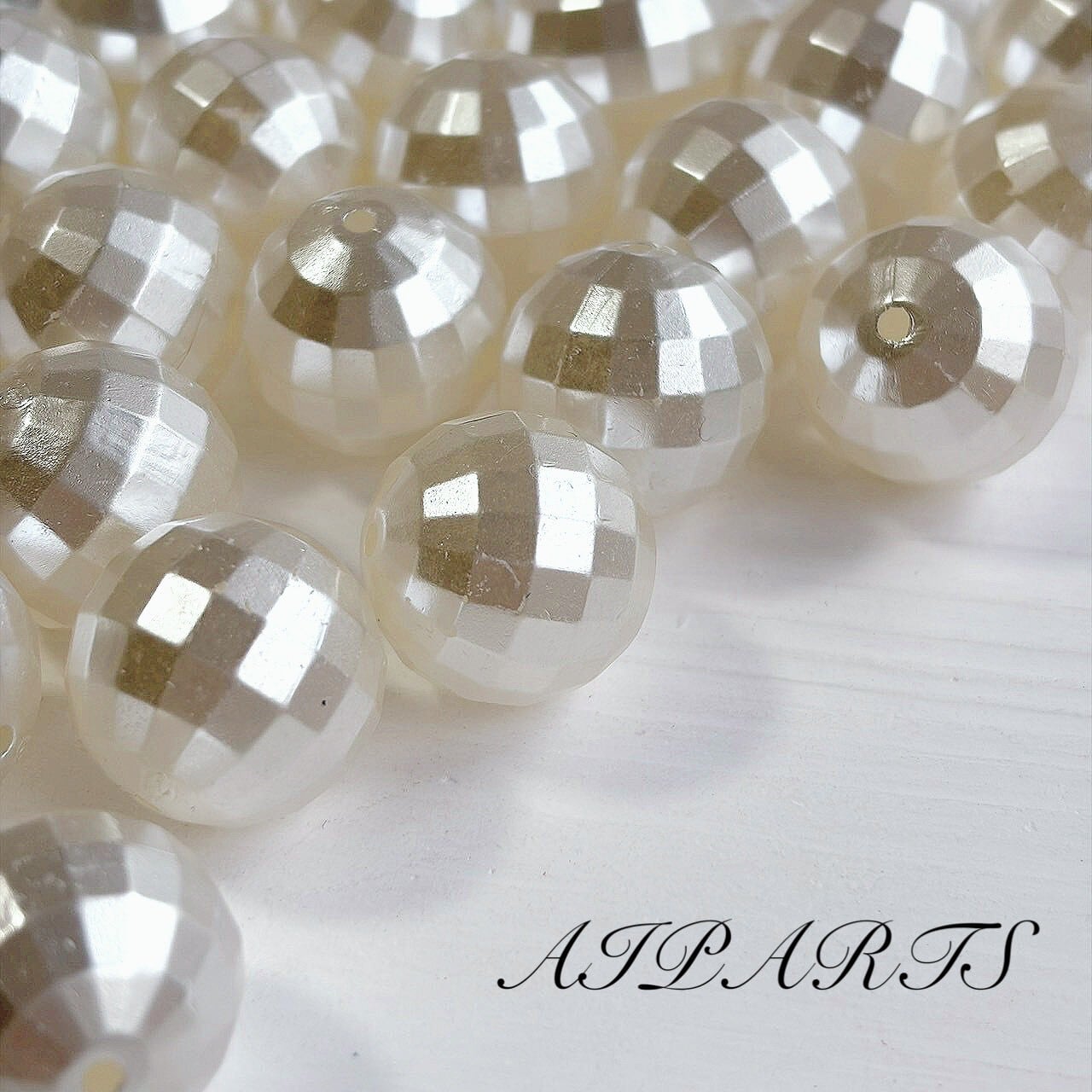 アクリルビーズ 20mm キスカ色 パール風 パール調 多面カット 多角 カスタムビーズ カスタムパーツ ハンドメイド資材 ハンドメイド素材 DIY素材 アクセサリーパーツ