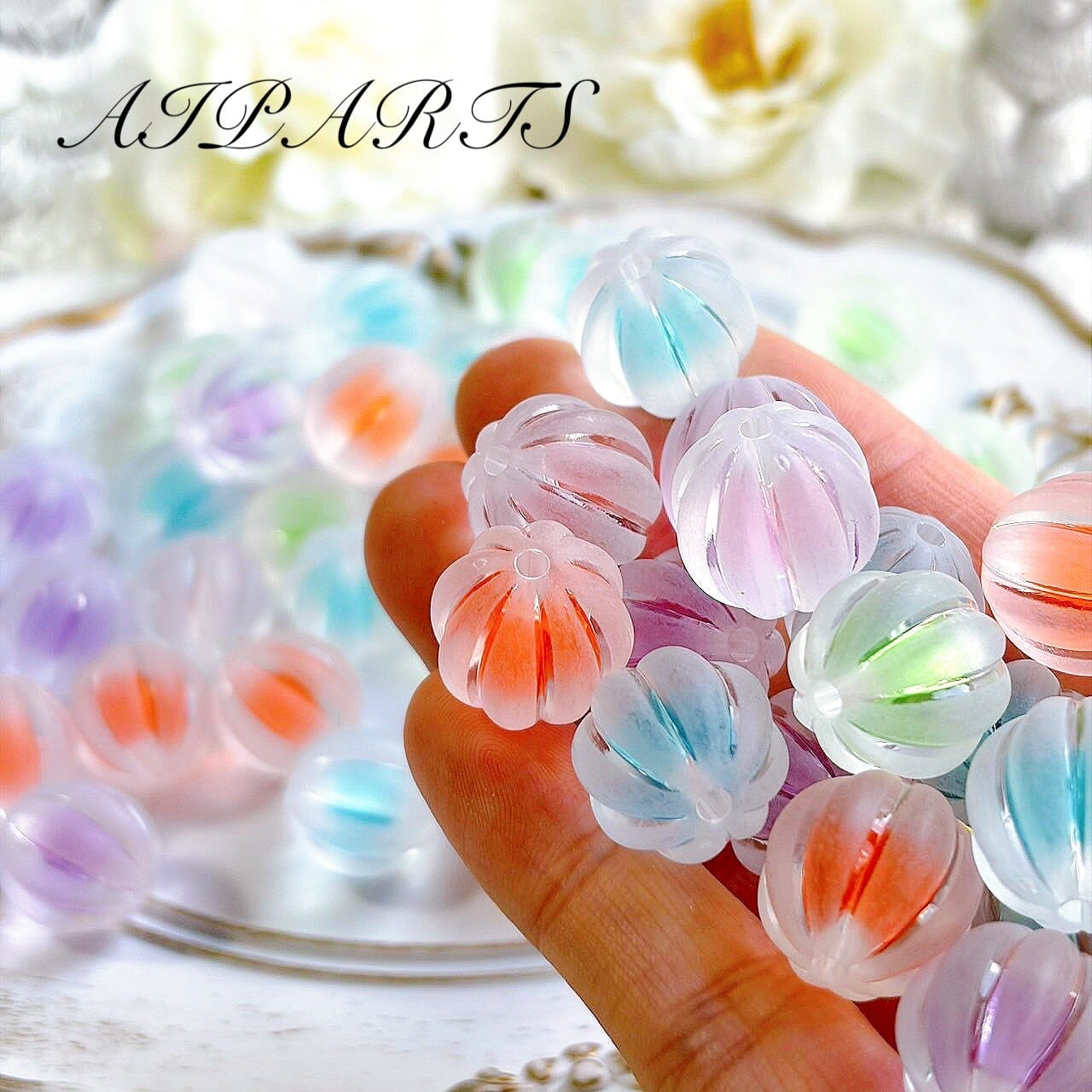 アクリルビーズ フロスト つや消し 二層 カボチャ かぼちゃ パンプキン カスタムビーズ カスタムパーツ ハンドメイド資材 ハンドメイド素材 DIY素材 アクセサリーパーツ