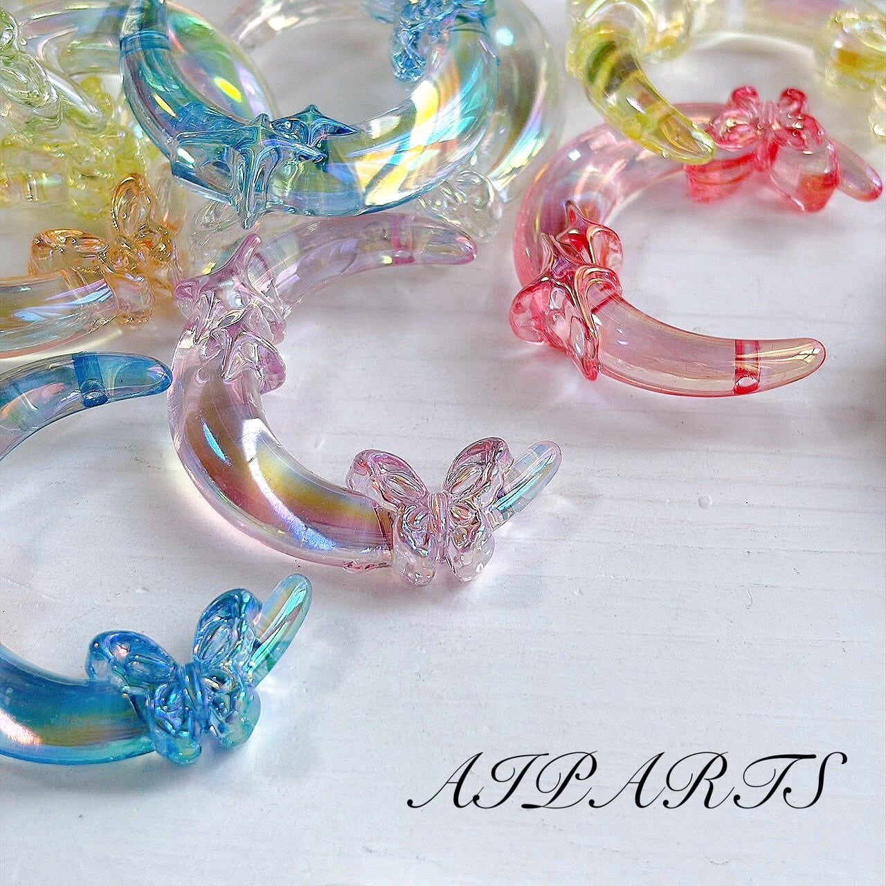 アクリルビーズ 高品質 高級 オーロラ加工 虹色メッキ ABメッキ 月 ムーン 星 スター カスタムビーズ カスタムパーツ ハンドメイド資材 ハンドメイド素材 DIY素材 アクセサリーパーツ