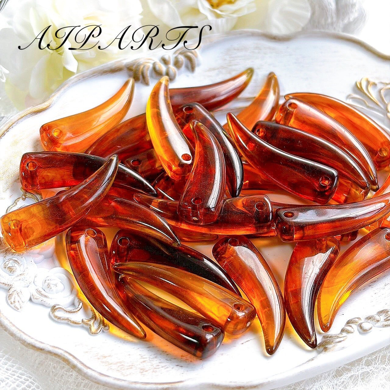 アクリルビーズ 牙 琥珀柄 三日月 牙 カスタムビーズ カスタムパーツ ハンドメイド資材 ハンドメイド素材 DIY素材 アクセサリーパーツ