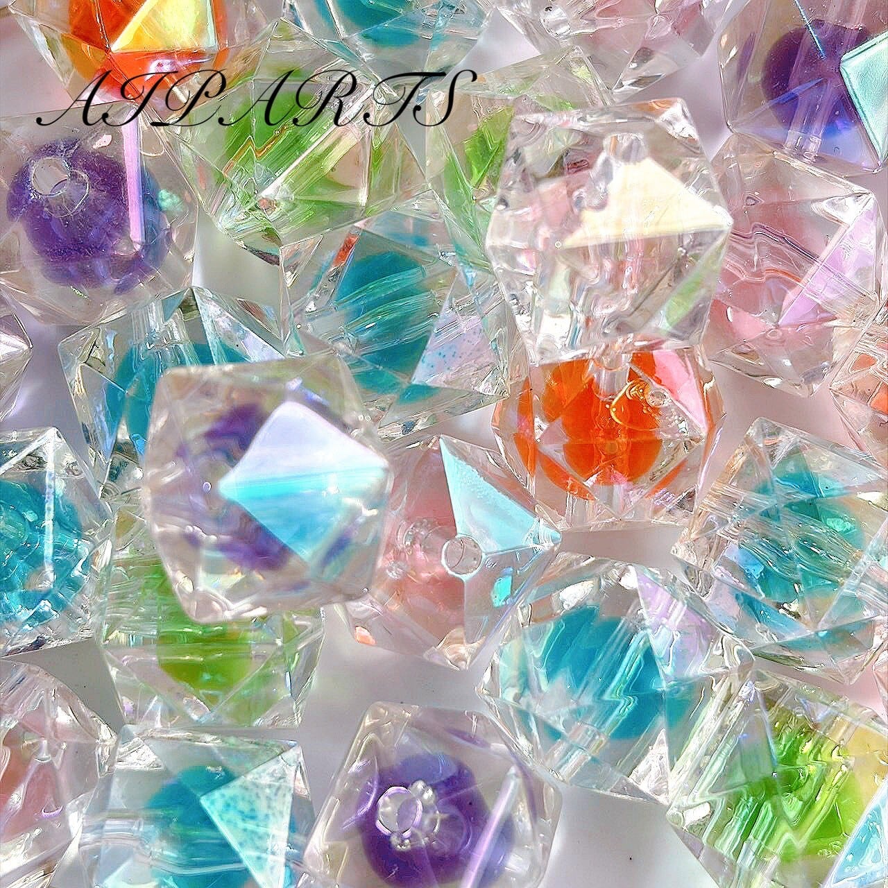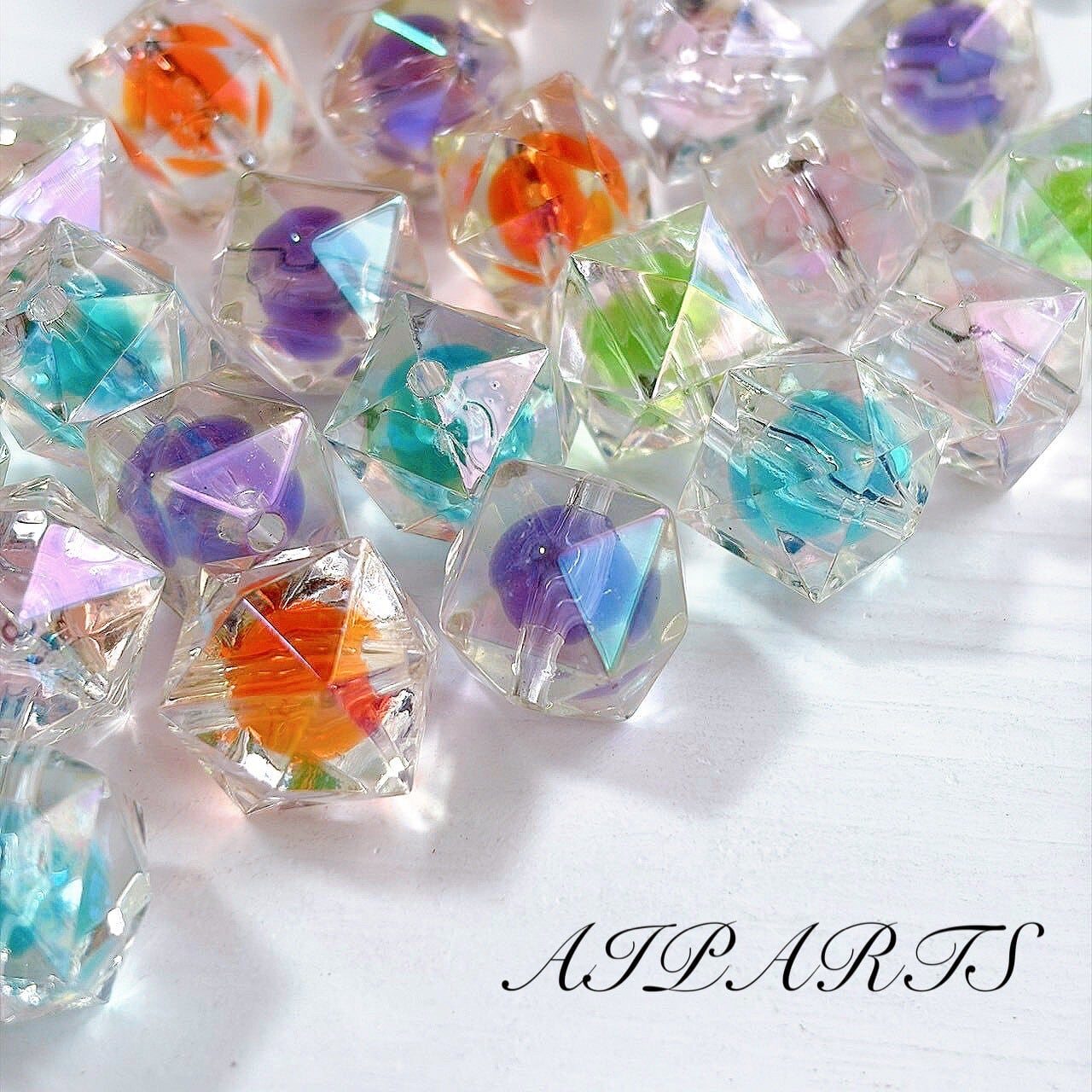 アクリルビーズ キューブビーズ スクエアビーズ 四角 オーロラ加工 虹色メッキ ABメッキ 二層 カスタムビーズ カスタムパーツ ハンドメイド資材 ハンドメイド素材 DIY素材 アクセサリーパーツ