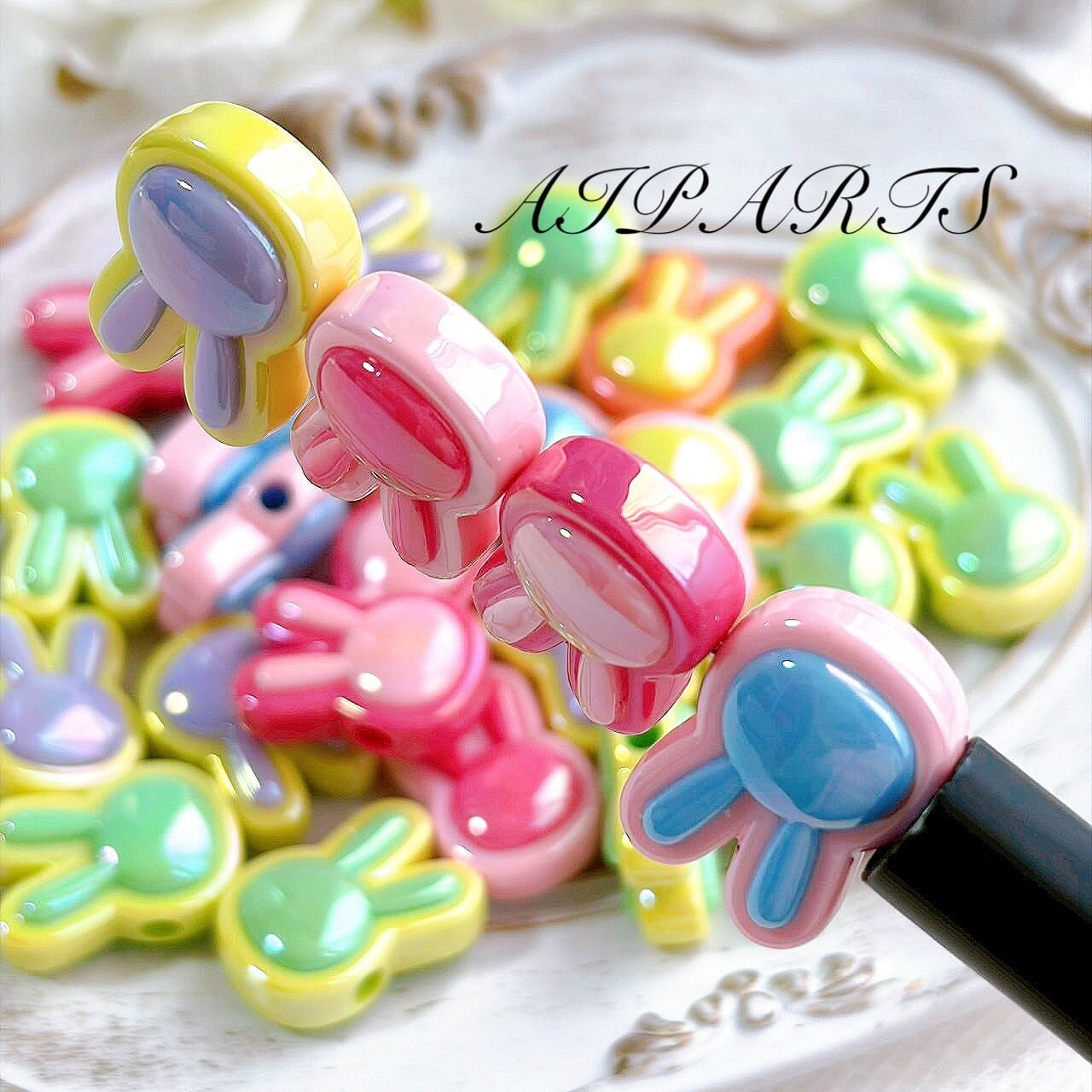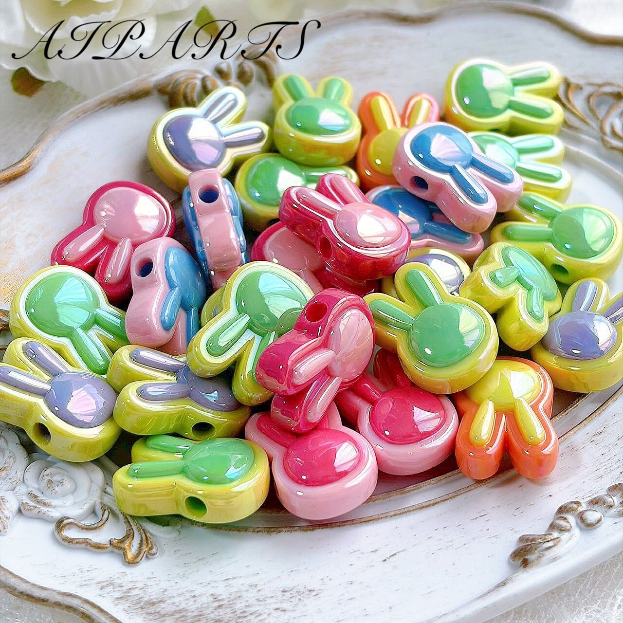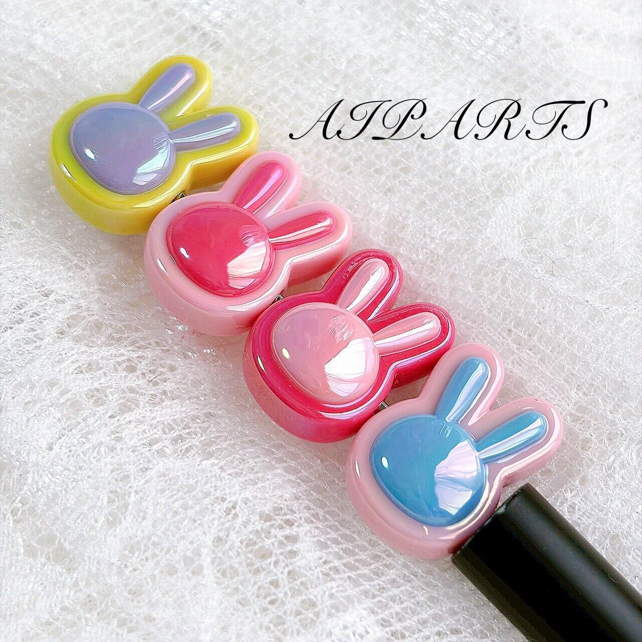 アクリルビーズ ウサギ うさぎ 兎 オーロラ加工 虹色メッキ ABメッキ 横穴 カスタムビーズ カスタムパーツ ハンドメイド資材 ハンドメイド素材 DIY素材 アクセサリーパーツ