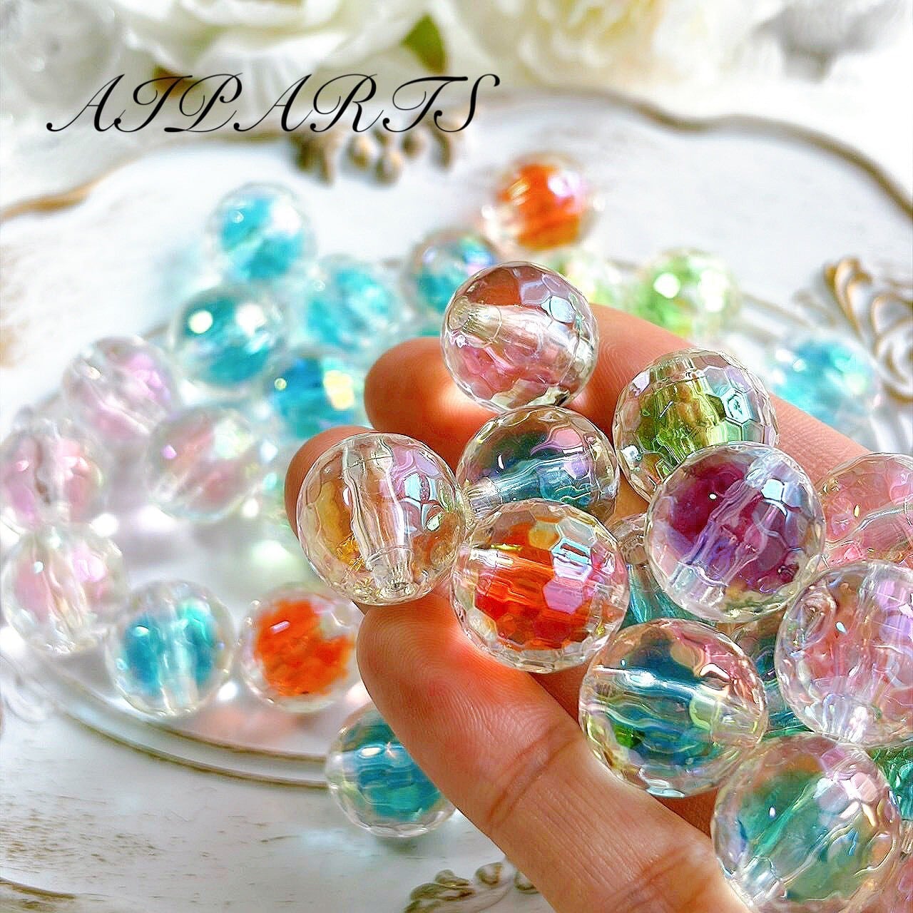 アクリルビーズ 16mm 多面カット 多角 二層 オーロラ加工 虹色メッキ ABメッキ カスタムビーズ カスタムパーツ ハンドメイド資材 ハンドメイド素材 DIY素材 アクセサリーパーツ