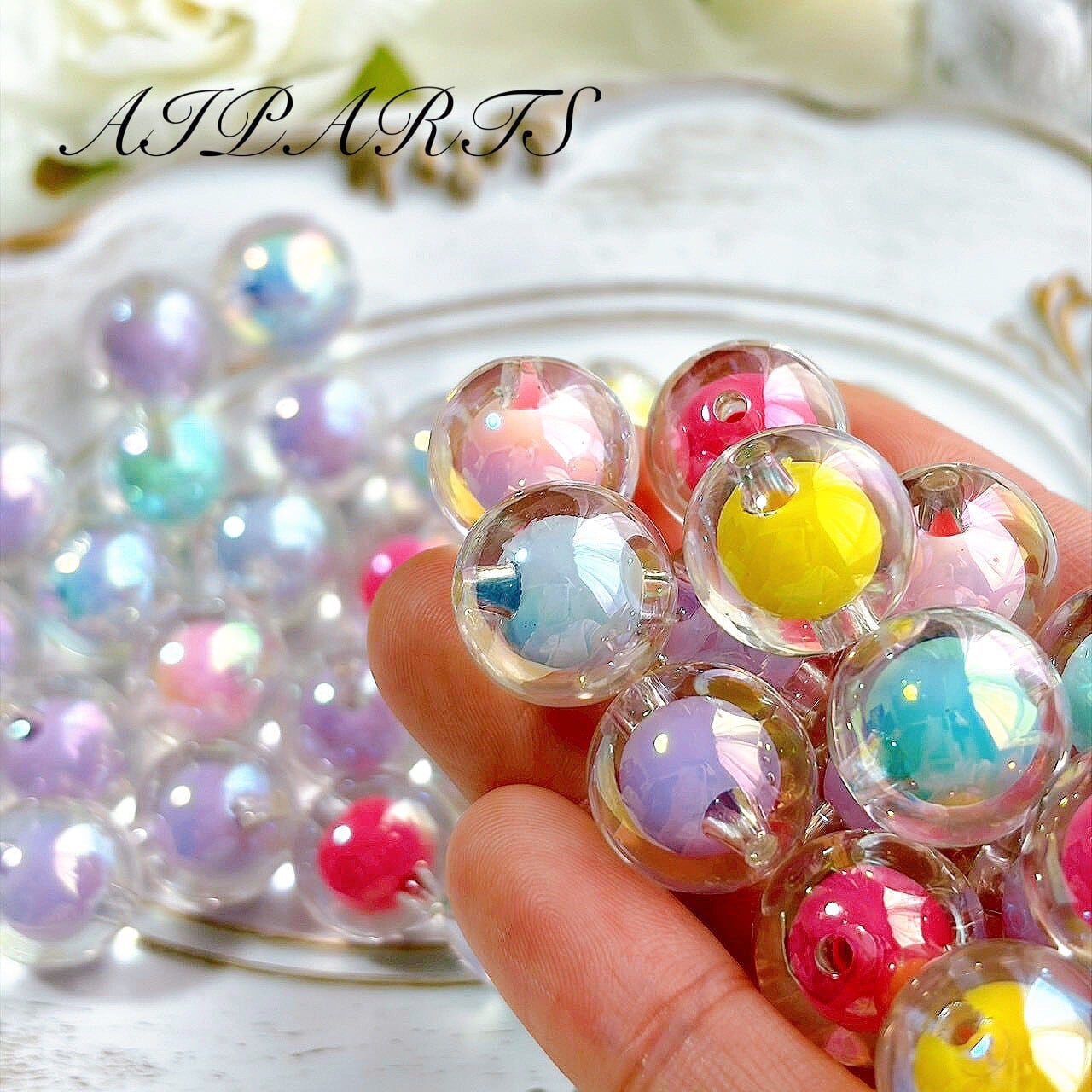 アクリルビーズ 16mm 二層 オーロラ加工 虹色メッキ ABメッキ カスタムビーズ カスタムパーツ ハンドメイド資材 ハンドメイド素材 DIY素材 アクセサリーパーツ